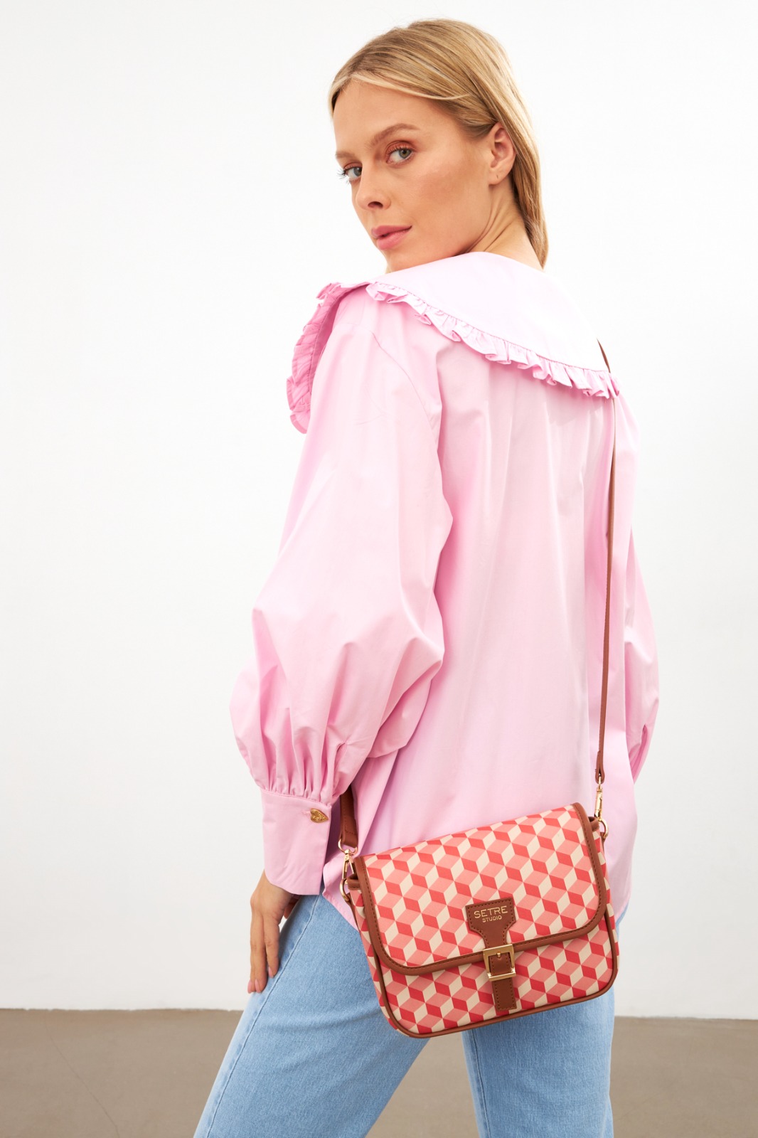 Camel Belt Buckle Detailed Geometric Pattern – Medium Size Bag