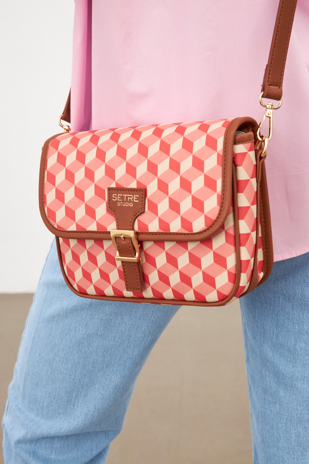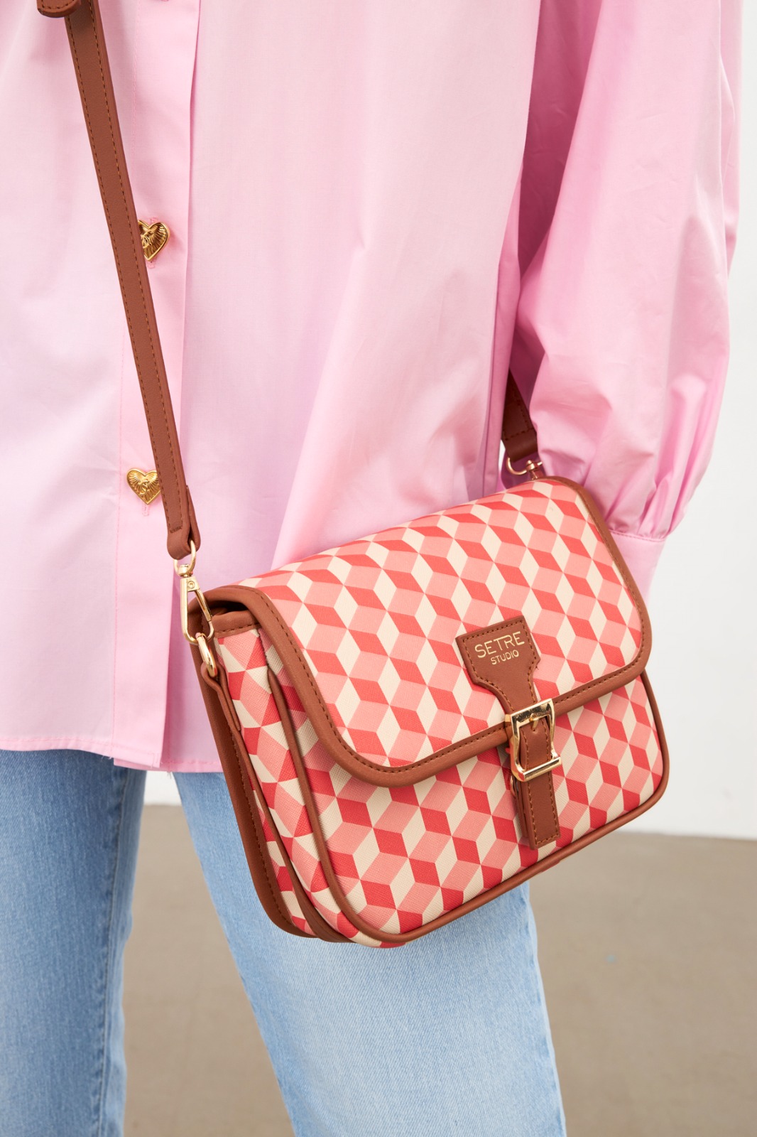 / Camel Belt Buckle Detailed Geometric Pattern – Medium Size Bag