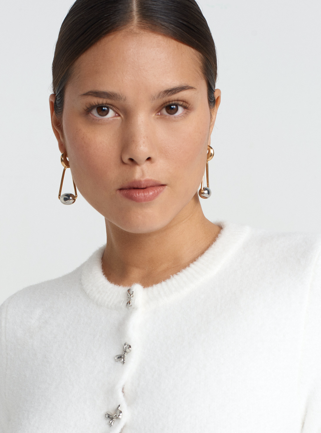 One Size Crew Neck Soft Texture Buttoned Knitwear Cardigan – white