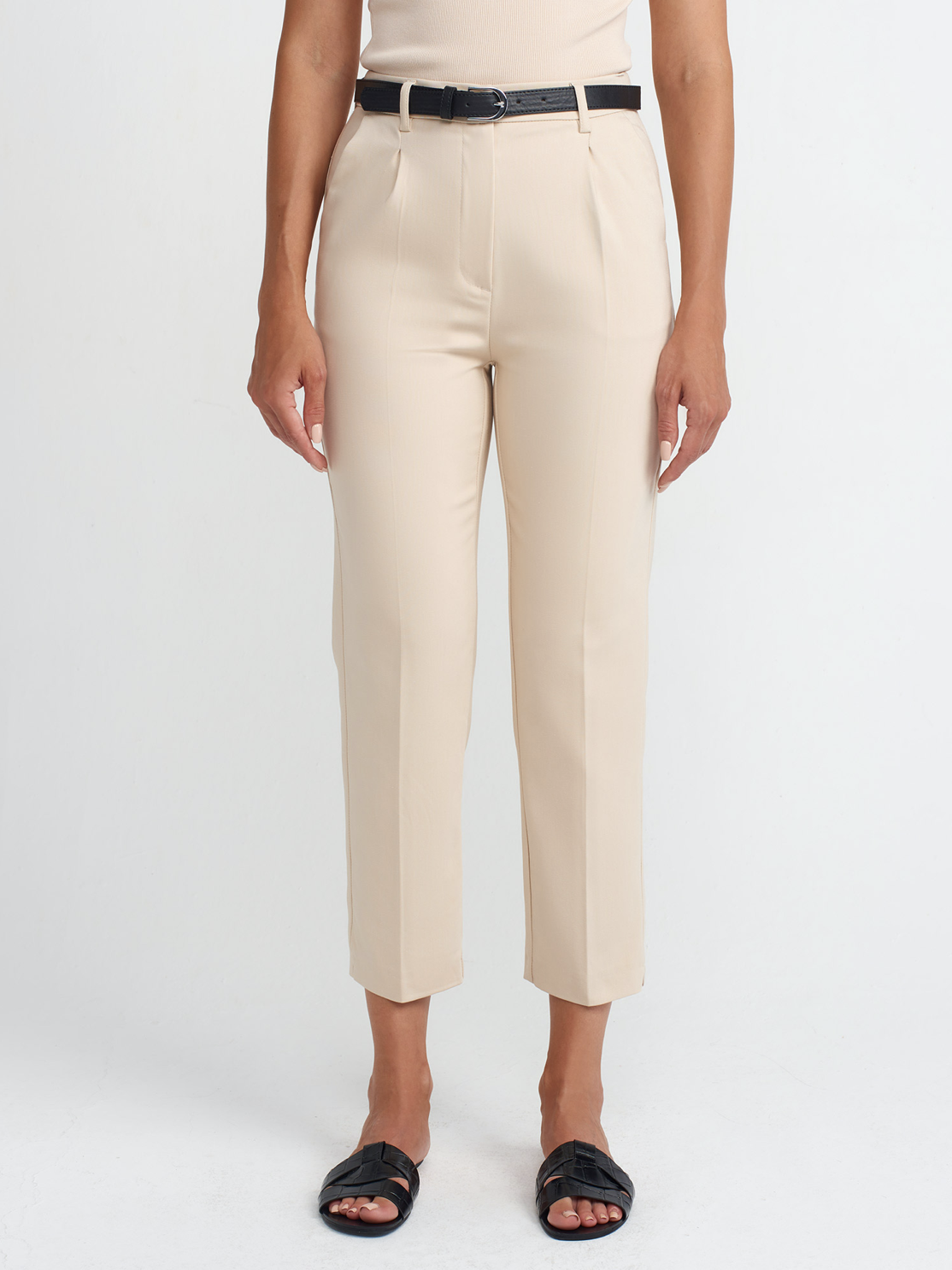High waist straight trousers with belt – Beige