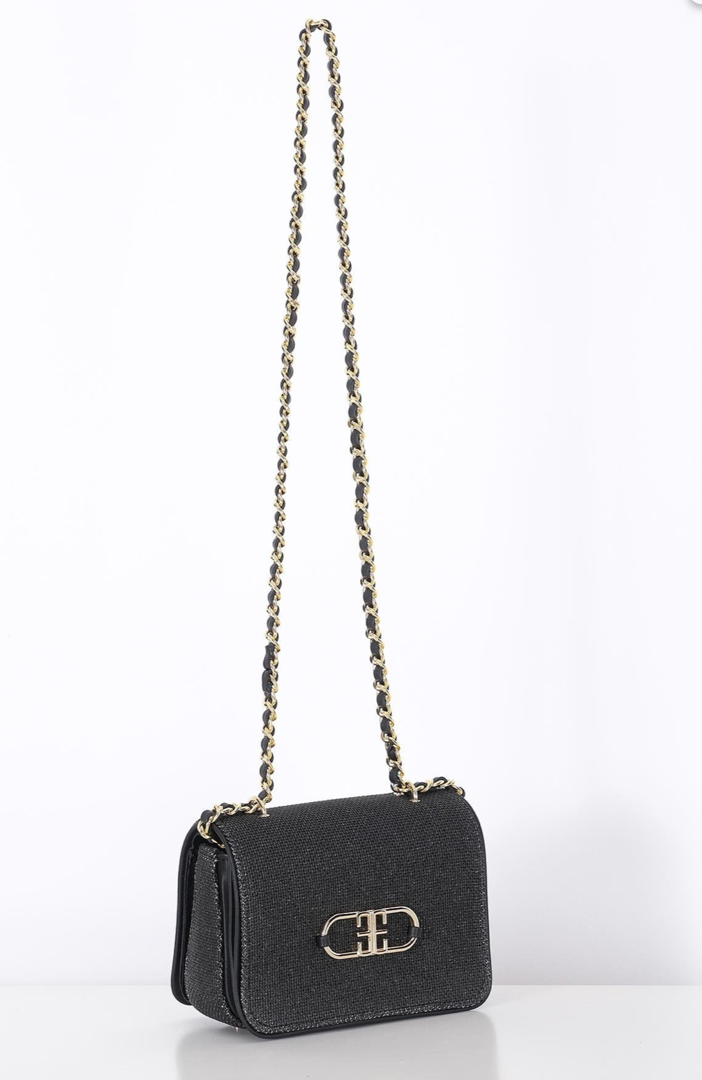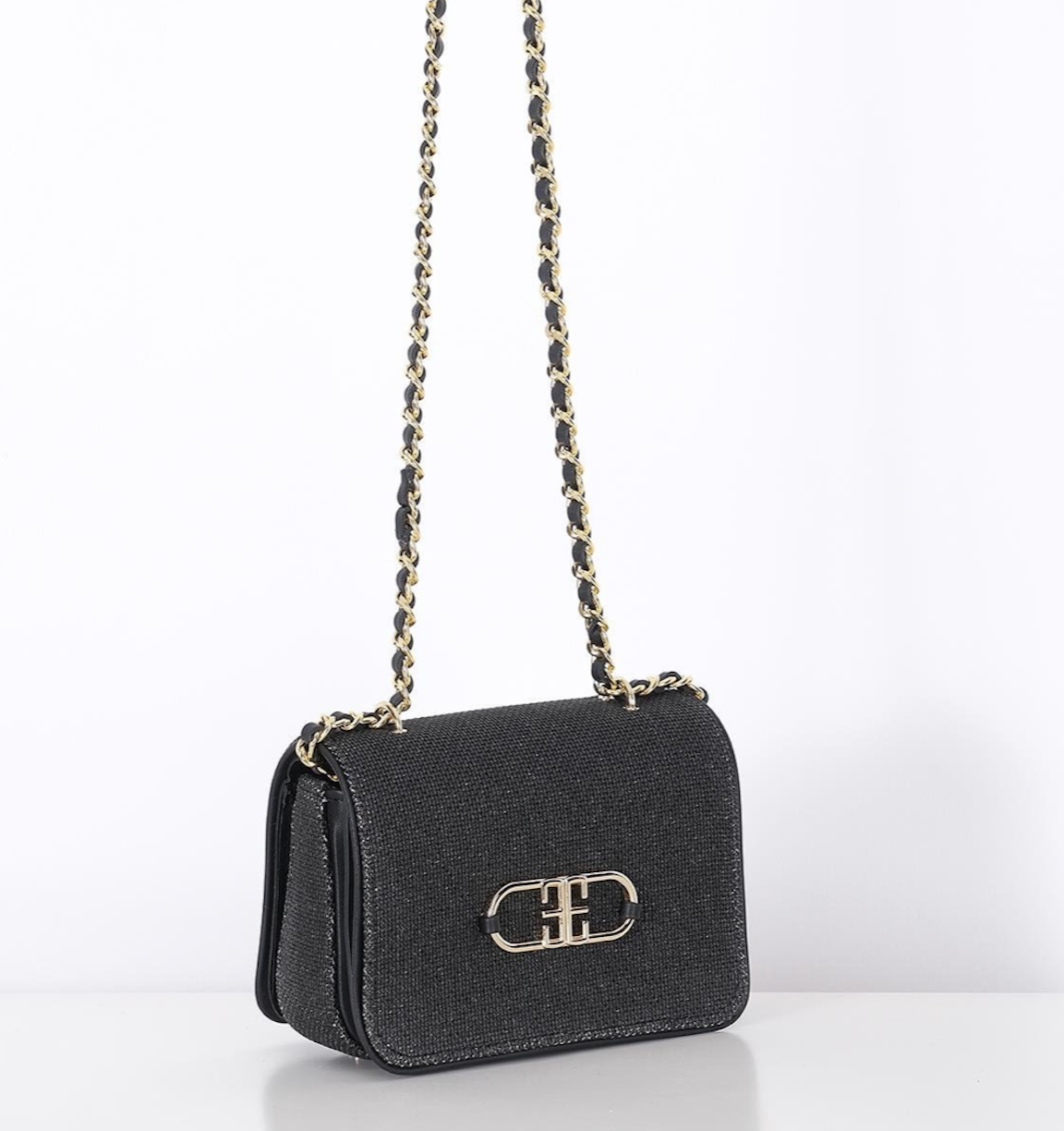 Linen, Leather Garnish, Chain Strap Stylish Bag