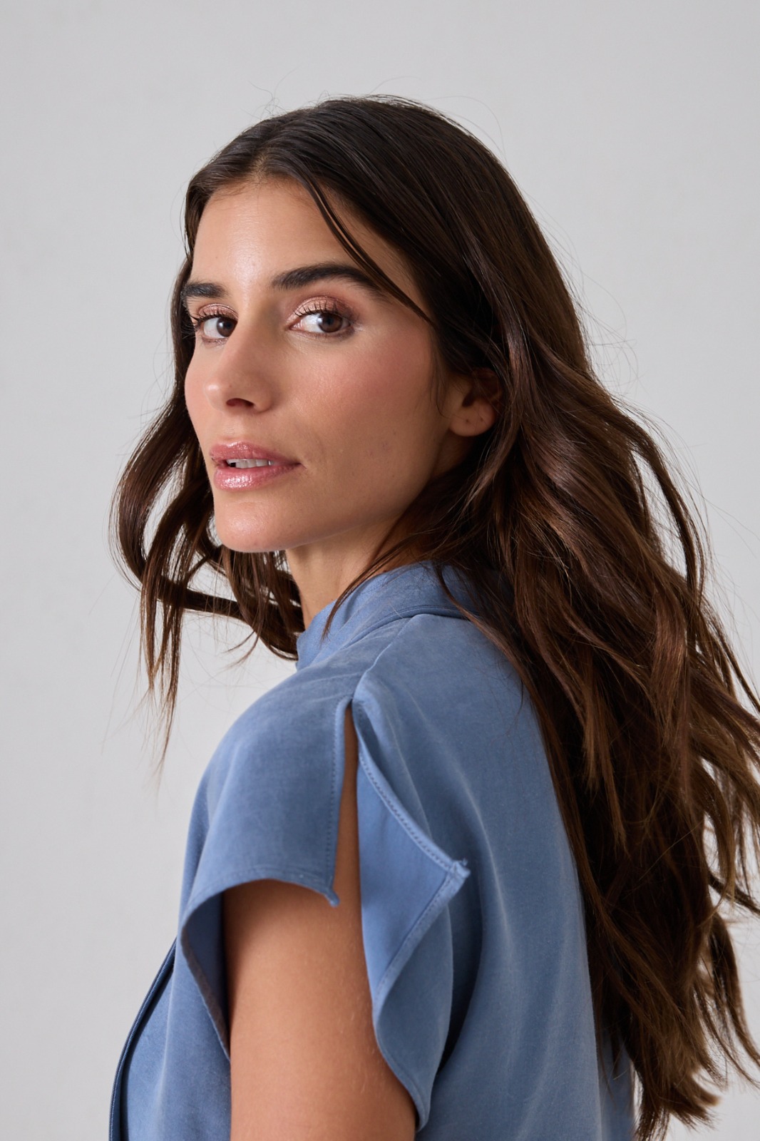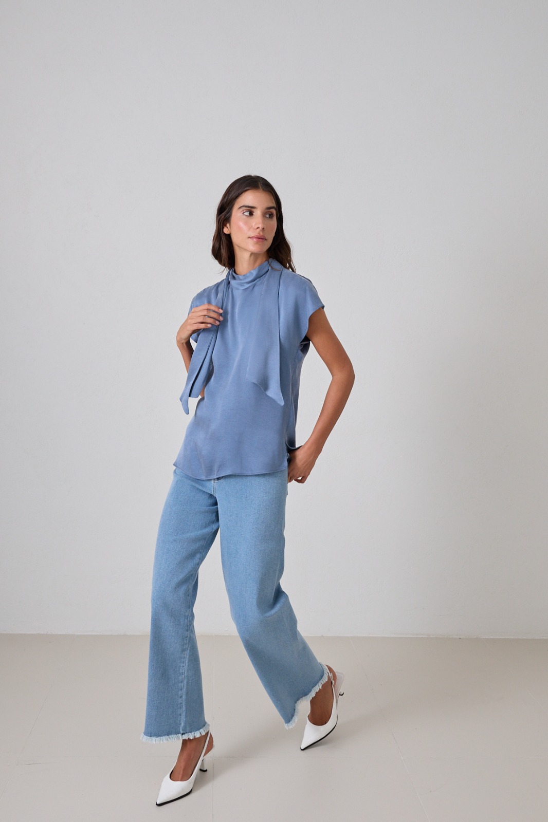 Neck and Sleeve Detailed Relaxed Cut Blouse – Blue