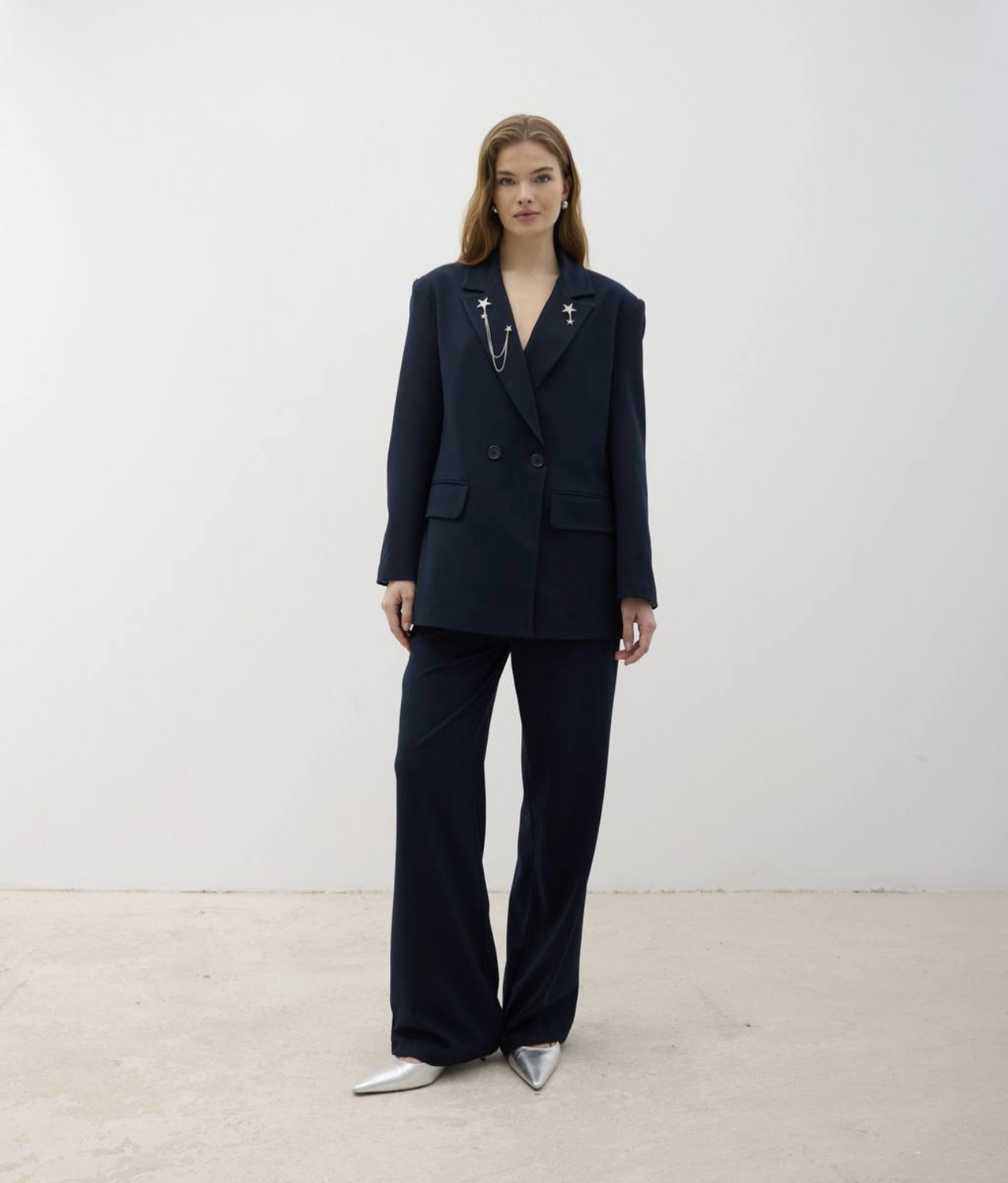 Oversize Suit Detailed With Brooch ( Removable ) – Navy