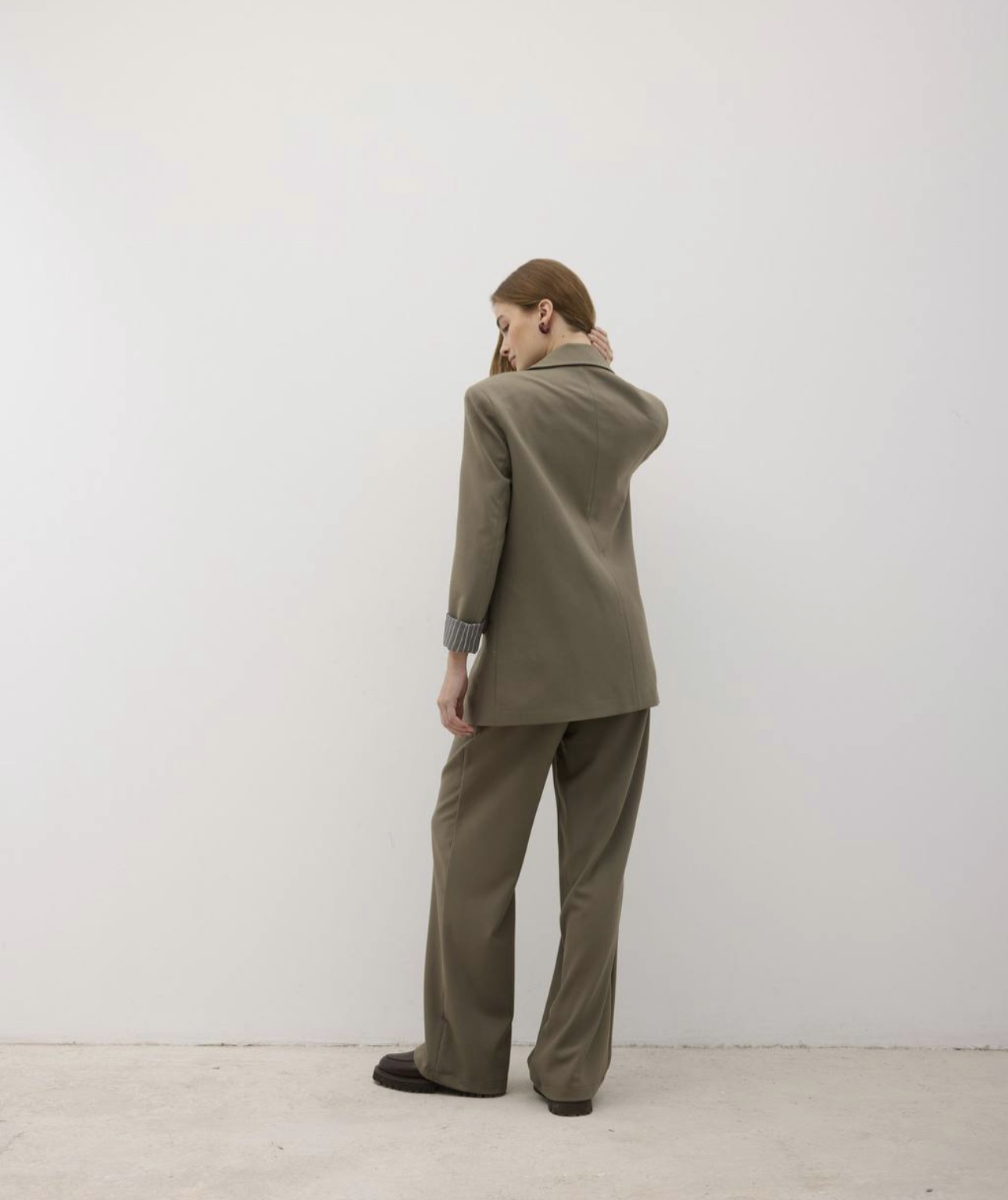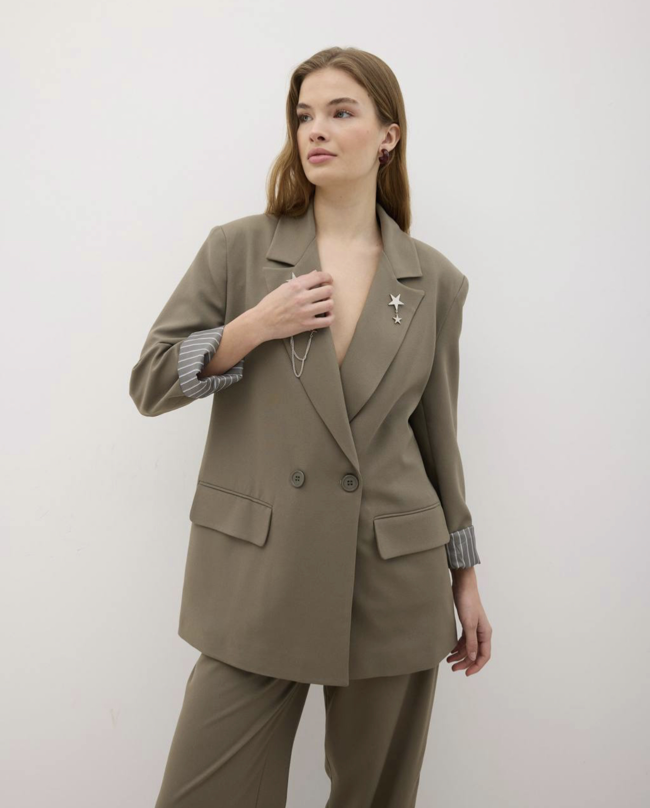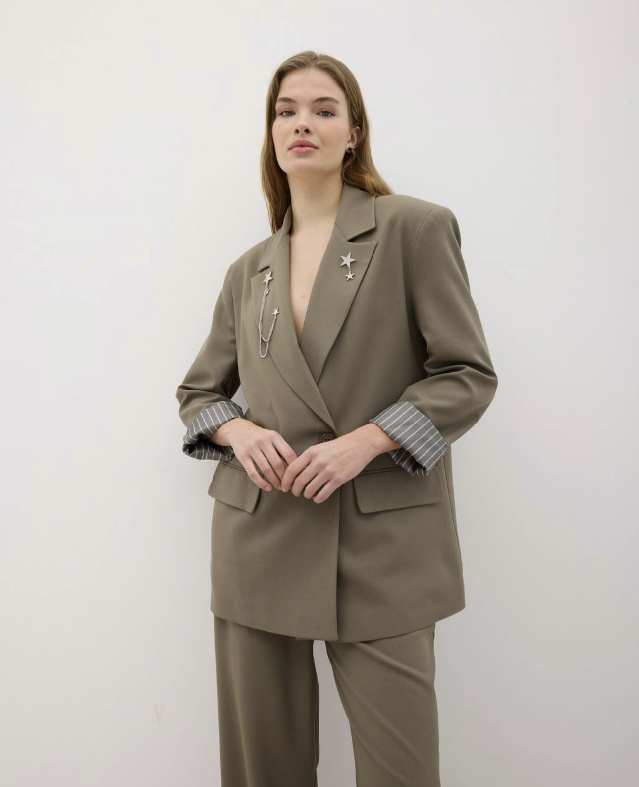 Oversize Suit Detailed With Brooch (Removable) – Olive Green